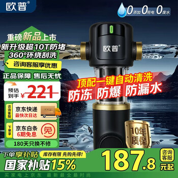 欧普前置过滤器全屋10T大流量家用净水器Q600/G300升级迭代款40μm/25μm双网反冲洗大通量管道过滤器 前置过滤器(自主安装)