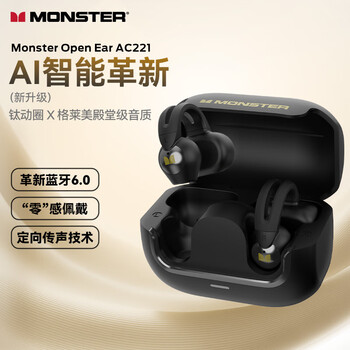 魔声(Monster)Open Ear AC221 无线蓝牙耳机夹耳式降噪跑步运动耳机长续航2025新款 AC221黑色【智能AI】
