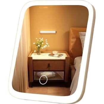 智能便携平板梳妆镜台式360度补光平面镜子学生折叠桌面led化妆镜带灯宿舍必备镜子 随机颜色【三档变色】+长按可调节亮度